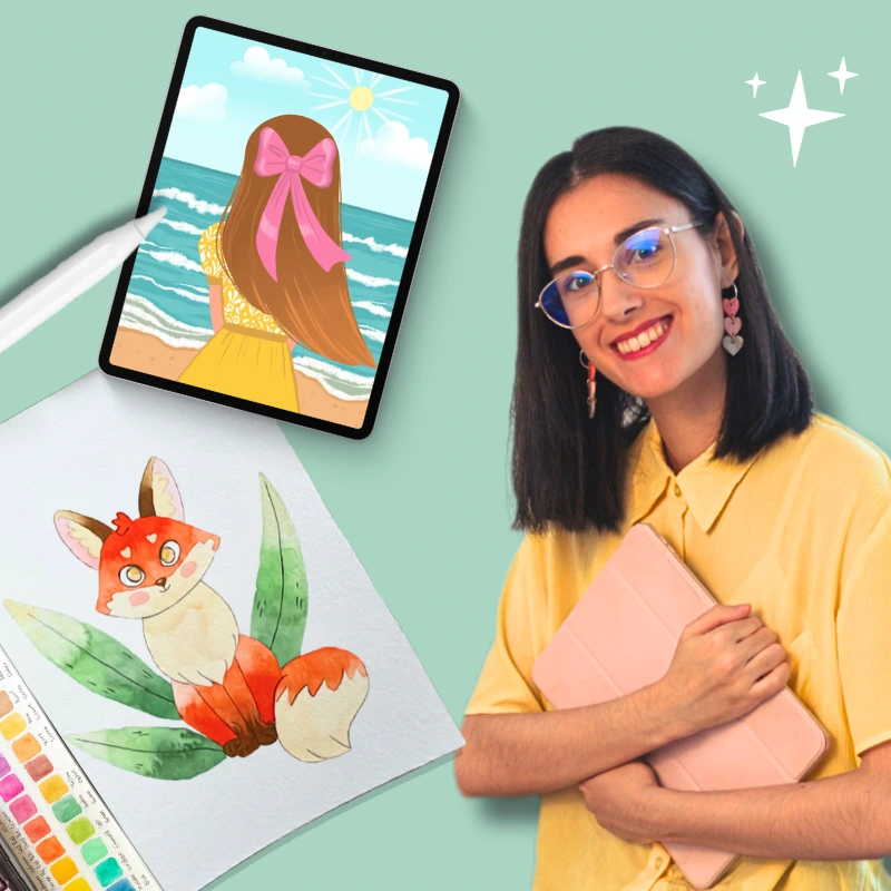 Te guío con mis clases para dibujar en digital, ilustrar libros infantiles y pintar (aunque empieces de cero) para que disfrutes de un hobby bonito y desarrolles tus habilidades y confianza en el arte.